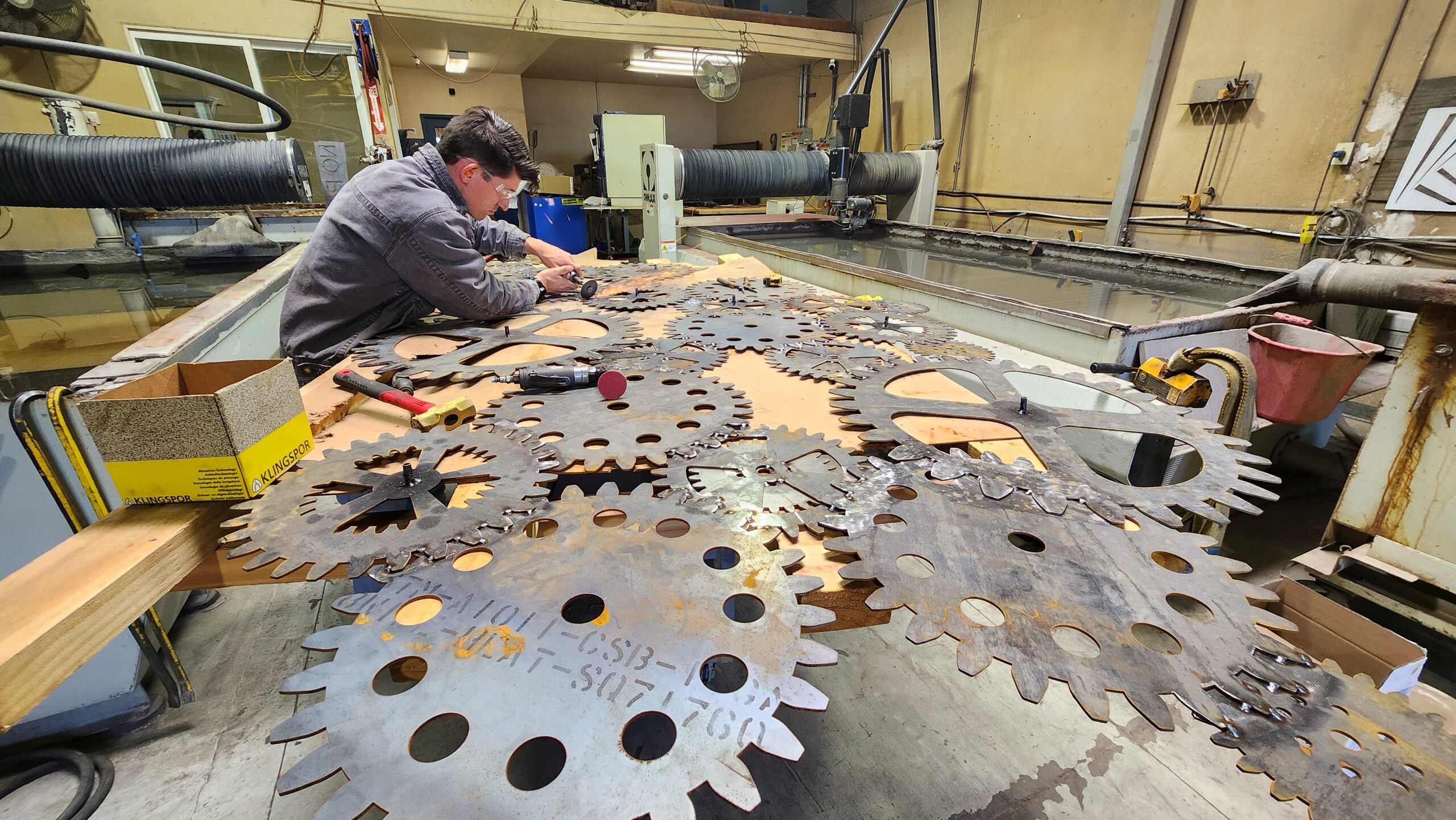 As San Diego’s largest waterjet shop, we’ve worked with many artists over the years to help bring their visions to reality. The ability to cut any shape in any material allows creativity otherwise not possible. We can inlay different material types like how we did the brass inlay in tile floor for all of the fantastic Better Buzz coffee shops. Waterjet cutting allows the artist to take advantage of the clean edges, precision cuts, and the ability to cut any material.